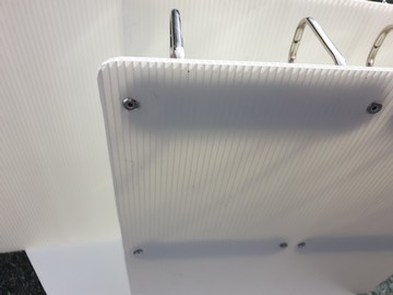 - Bílé desky z komůrkového polypropylenu (tloušťka 3 mm, 2x40 podélných žeber na každé straně).