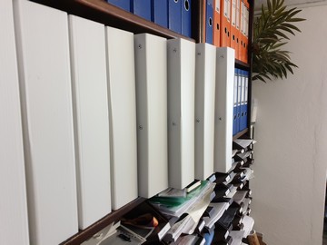 8 ks SafeBOX 160 (1.280 DVD - 10 TB dat) mezi běžnými šanony zabírá jen 59 cm